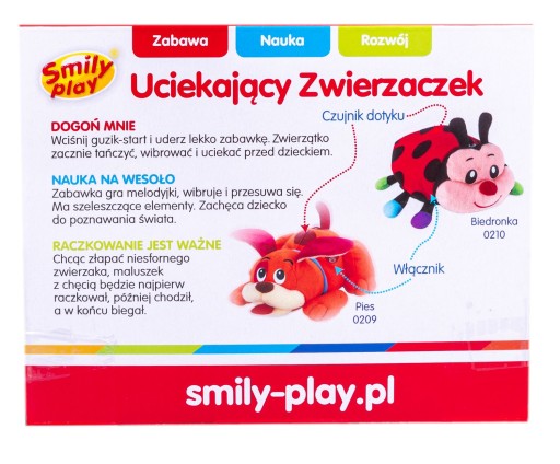 Просто погладьте милого песика пальцем, і він почне вібрувати, видавати радісні звуки і тікати, заохочуючи дитину слідувати за ним. Іграшка для повзання мотивує дитину повзати і повзати самостійно, допомагає навчитися робити перші кроки. Інтерактивна собачка Smily Play тікає як справжнє цуценя, що гарантує масу захоплюючих і веселих розваг для кожного малюка!