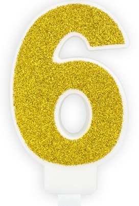 Свічка на день народження PartyDeco, №6, золото