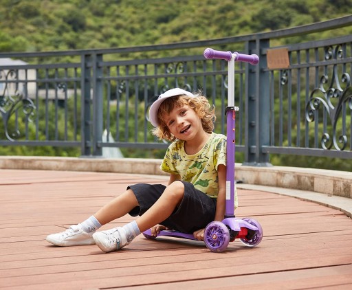 - Регульована висота, знімне кермо: Висоту керма можна регулювати від 68 см до 86,5 см, що дуже добре для зросту дитини. Скутер легко складається і його можна зберігати в машині