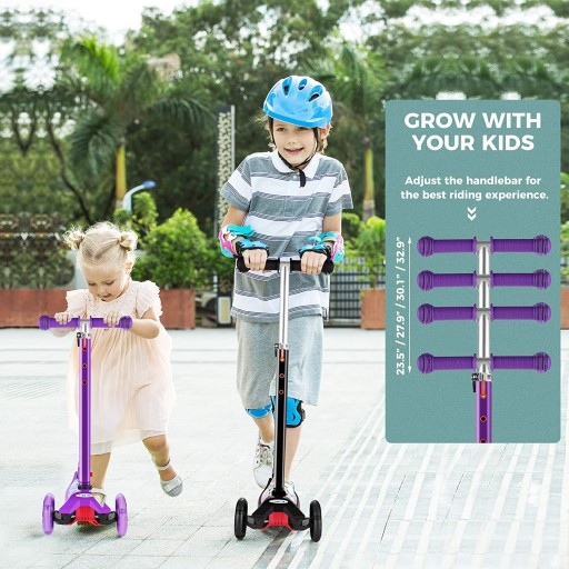 - Унікальні світлодіодні колеса:4 поліуретанових колеса оснащені кольоровими світлодіодами, які реагують на рух самоката.Світло виглядає чудово і завжди подобається дітям, а також 2 задні колеса з гальмами, завдяки яким мамам не потрібно турбуватися про безпеку самоката. мої діти під час гри.