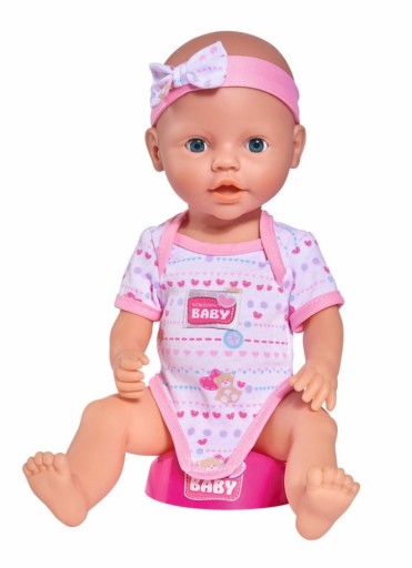 Функціональна лялька Дівчинка з аксесуарами 43 см 5039005.У набір входить лялька в рожевому боді і тканинній пов'язці з бантом, а також аксесуари для веселого відпочинку: горщик, пелюшка, пляшечка, чашка, соска, тарілка, ложка і виделка. Лялька може пити і «пісяти» на горщик або в підгузок. Настав час вечірнього купання, приготуйте ляльці ванну з водою (продається окремо) і помийте її, потім дайте їй соску і заколисайте її. Кожна дівчинка може відчути себе справжньою мамою, піклуючись про ляльку із серії New Born Baby.