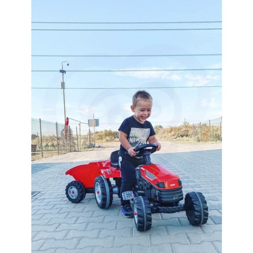 Педальний трактор Фермер GoTrac MAXI з причепомце ідеальний подарунок для кожної дитини. Трактор маєзапатентована система керування кермомщо полегшує керування трактором навіть для найменших користувачів.