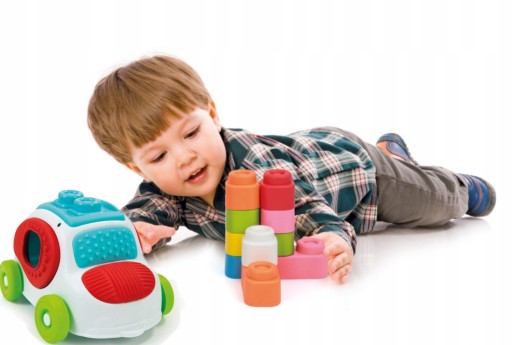 Машина кольорова. Має 4 колеса, що обертаються незалежно один від одного, люк на даху, через який можна вставляти і знімати блоки, а також два м'яких вікна автомобіля. М’які елементи, такі як маска та бічні вікна, можна торкнутися, щоб відкрити різні візерунки та форми. У набір також входить 8 м'яких блоків Clemmy. Дах автомобіля можна використовувати як основу для вежі з блоків.