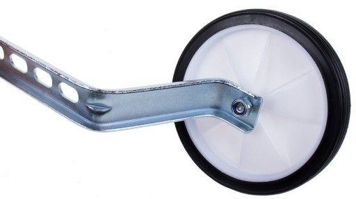 Бічні колеса велосипеда VERSO білі та покриті чорною гумою. У комплект входять 2 колеса, кронштейни та кріпильні гвинти.