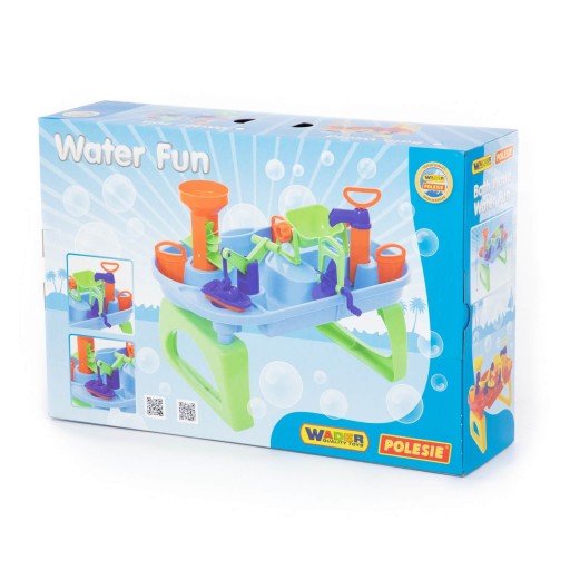 Водні ігри – одні з найкращих, у компанії Polesie є щось особливе. Іграшки серії ВОДНИЙ СВІТ від POLISIE Унікальні набори, які принесуть багато радості найменшим. Вони виготовлені з пластику найкращої якості, завдяки чому ми впевнені в якості та безпеці під час використання. Набір WATER LIGHT - це корито на двох широких ніжках, в яке можна наливати воду. Всередині є водні коридори та численні рухомі елементи. Оснащений двома жорнами. Один жене воду, інший має воронку, через яку ми виливаємо рідину на обертове водяне колесо. Є три дамби і кран насоса, з якого вода тече в ємність. Ми можемо вилити з нього воду завдяки двом ручкам, які дозволяють нахиляти ємність. Також є домкрат з гачком для кріплення човна. Крім доступних водних ігор, дитина має місце для розміщення в кориті невеликих лежанок і фігурок улюблених героїв.