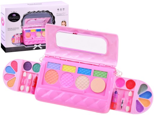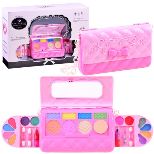Елегантний комплект із сумочки з дзеркалом + аксесуари для макіяжу обов'язково принесе багато радості кожній маленькій зірочці. Набір містить цілих 28 елементів, які дозволять створити чудовий макіяж. блиски для губ, рум'яна, пензлики, тіні та їх аплікатори, які допоможуть створити приголомшливий макіяж для будь-якого випадку. Сумка виготовлена повністю з пластику і має безпечне дзеркало, яке неодмінно допоможе вам нанести тіні. Завдяки невеликим розмірам і елегантному зовнішньому вигляду наша маленька кравчиня зможе взяти його куди завгодно, навіть на бал. Після гри сумку можна закрити, щоб захистити аксесуари від пошкодження або втрати.