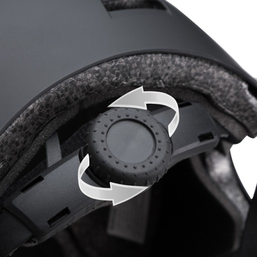 Регульований підборідний ремінь з підкладкою, швидким зніманням і обертове кільце на задній частині шолома забезпечують правильну посадку.