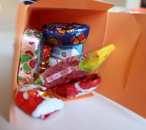 Паперовий торт, цукерниці, маленькі іграшки, повітряні кульки, розмальовки :) Є багато місця!