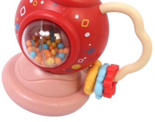 Брязкальце має всередині різнокольорові кульки, що дзижчать.