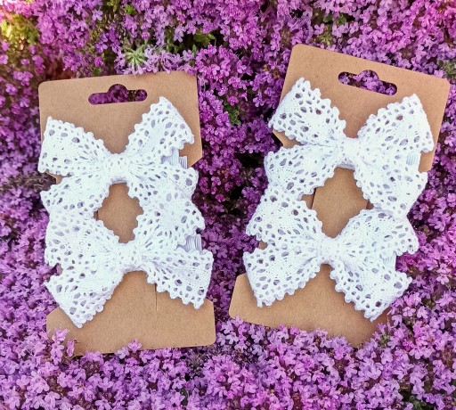 Запонки з кліпси (алігатор) без зубчиків довжиною 4,5 см, обтягнуті стрічкою, декоровані бавовняним бантом.