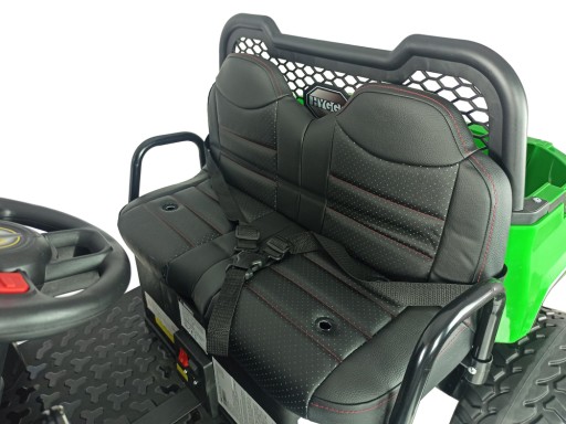 Завдяки 4 потужним двигунам транспортний засіб легко справляється з пагорбами, нерівностями або травою. В автомобілі є гальма, які спрацьовують після зняття ноги з педалі газу. Техніка необхідна в кожному домі.