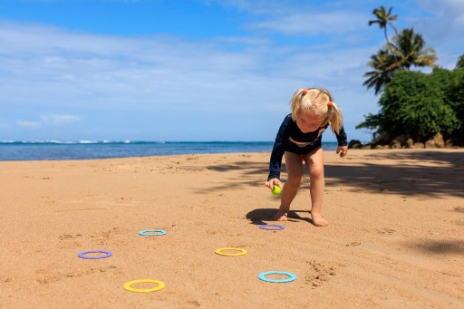 Розкладіть різнокольорові кільця на підлозі (або у воді!) і спробуйте потрапити м'ячем у середину них! Це спрацювало? Чудово! Тепер покладіть м'яч в одне місце і кидайте в нього кільця! Або побудуйте на піску доріжку для м'ячів, або запустіть на воду круглі «кораблики»...