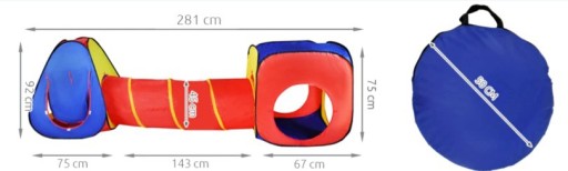- БАГАТОФУНКЦІОНАЛЬНИЙ- завдяки трьом з'єднаним частинам можна використовувати як намет, смугу перешкод або елемент ігрового майданчика; має багато входів/виходів, що робить гру ще більш привабливою.