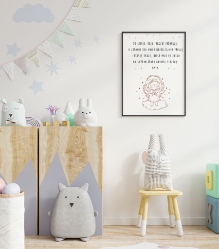 Дитячий плакат Тобі, Боже. Молитовний плакат – ідеальний подарунок на народження, хрещення чи святе причастя. Цей цінний сувенір не тільки стане гарним доповненням до кімнати нашої дитини, але й дасть їй чудову можливість вчитися та читати молитви.