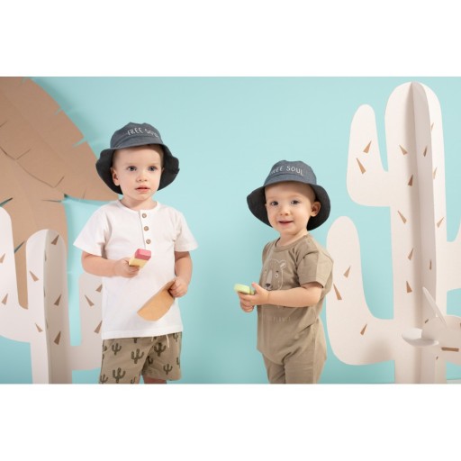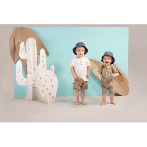 Дитячі повзунки з коротким рукавом колекції Free Soul виготовлені з ніжної зеленої бавовни. Принт із зображенням веселої пантери та напис BE KIND TO OUR PLANET спереду вказує на унікальний характер колекції. Дитячі повзунки є обов'язковим елементом літнього ліжка для новонародженого. Виробляється в Польщі і має сертифікат «Безпечний для дітей».