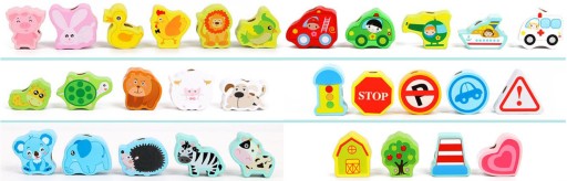 â Протягування нитки та видалення блоків із нитки є одним із улюблених занять, у які діти можуть грати нескінченно, практикуючи свої ручні навички.