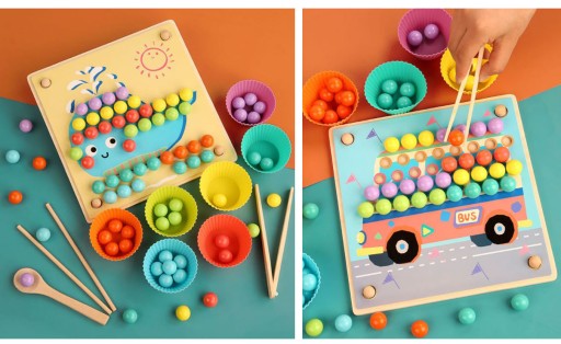 - â РОЗВИТОК РУЧНИХ НАВИЧОК -Âскладати картинки з кульок за допомогою дерев’яної ложки, плоскогубців або паличок буде дуже весело, а також покращить ручні навички.