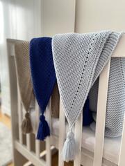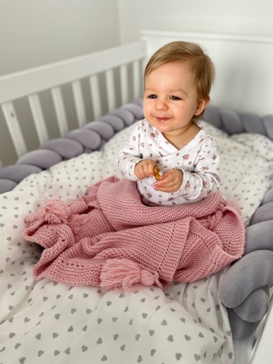 Коли на світ з'являється довгоочікуваний малюк, хочеться дати йому все найкраще. Ви витрачаєте багато годин, готуючи свій лайет. Звичайно, в нього обов'язково повинна входити ковдра. Наша в'язана приємна на дотик ковдра закутає вашого малюка під час прогулянки або сну. Він буде добре працювати з перших хвилин життя вашої дитини, оскільки виготовлений з натуральних тканин і не подразнює його ніжну шкіру. Завдяки відповідному матеріалу малюк спить спокійно, а його шкіра може дихати. Ідеально підходить для коляски, коляски, люльки, корзини Moses, автокрісла