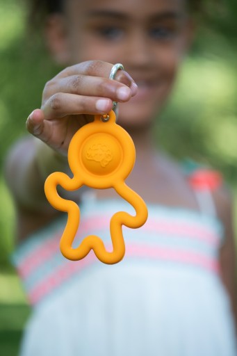 Dimpl Liliputek, схожий на маленьку людську фігурку, повністю виготовлений із м’якого силікону, а його голова — це м’яка бульбашка з логотипом Fat Brain Toy Co, яку потрібно натискати та штовхати неспокійними пальчиками дітей і дорослих.