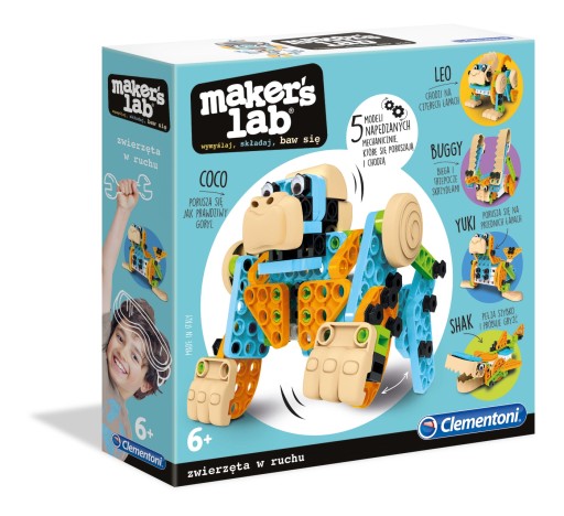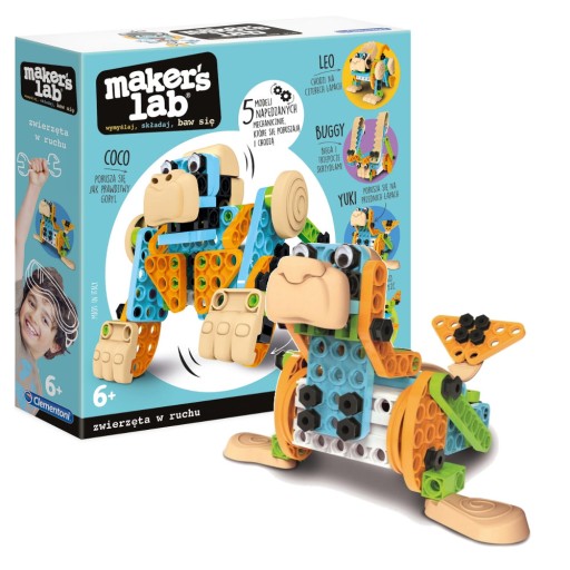 ⢠Лабораторія механіки Maker Lab, розроблена для маленьких дітей, містить багато деталей, які можна легко скласти, щоб створити фантастичних тварин, які рухаються та ходять.