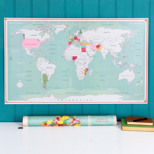 Оригінальна карта, яка так само приваблива як для студента, так і для будь-якого любителя подорожей. Здавалося б, небагато барвистий, він стає барвистішим із часом і відкриттям нових країн. Молодий мандрівник може досліджувати регіон, де він був востаннє. Інші можуть просто здерти фарбу з контурів наступної країни, про яку вони дізнаються щось цікаве. Варіантів принаймні кілька, і ними варто скористатися, тим більше, що сама карта, висить у дитячій кімнаті, має виховне значення і полегшує вивчення географії.