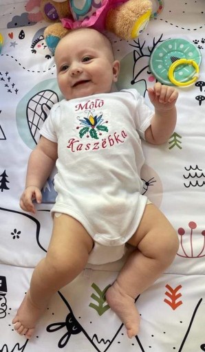 - Боді прикрашене вишивкою з кашубським мотивом, вишивка дуже міцна та елегантна, вишивка закріплена м'якою тканиною, щоб не дратувати шкіру дитини