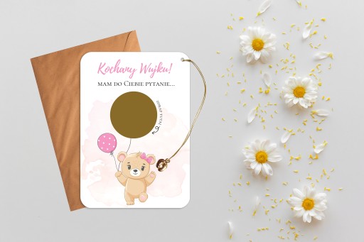 Прохання стати хрещеним батькомце водночас і прекрасний жест від Дитини, і чудовий сувенір на пам’ять. Іменні листівки зі скретч-карткою та коротким запитанням обов'язково стануть приємним сюрпризом для майбутнього Хресного. Стильно та елегантно вписується декоративна листівка з кольоровим конвертом.