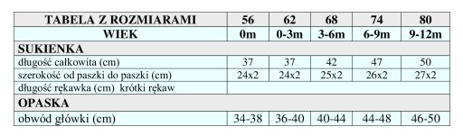 - Можлива комплектація інших розмірів окремих частин комплекту (наприклад, розмір сукні 68, розмір пальто 62 та ін.)