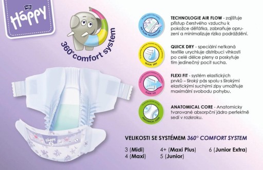 По-друге, найменші розміри підгузників Happy мають нову спеціальну систему Early Care System, яка забезпечує м'якість, ніжність і захист від подразнень. Унікальні особливості підгузників Happy Mini, правильно підібрані до потреб дитини, роблять підгузник таким же м’яким, як нижня білизна.