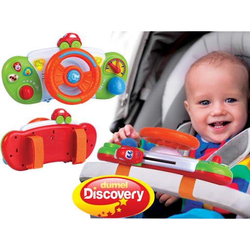 Повертайте кермо і спостерігайте за машиною, що їде по панелі приладів, натискайте кнопки зі стрілками, повертайте ключ у замку запалювання і дивіться, які звуки видають тварини. Посередині керма клаксон, як у справжньої машини! Іграшка оснащена вимикачем, тому малюк може використовувати її де завгодно. Панель управління має практичні ремені на спині, тому ви можете легко прикріпити її до дитячої коляски.