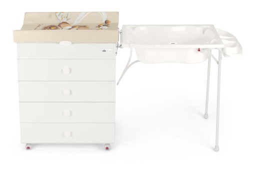 Додаткова рама, що кріпиться збоку комода ASIA, дозволяє батькам зручно і безпечно розмістити дитину на пеленальному столику після виймання дитини з ванни.