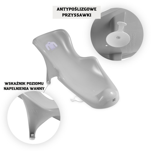 - БЕЗПЕКА- сидіння не містить BPA (бісфенол А) або пластифікаторів. Пластик (ПП), з якого виготовлений прилад для сидіння, дуже гнучкий і зручний у використанні. Він відповідає європейському стандарту EN 17022:2018 для виробів для немовлят і маленьких дітей - обладнання для купання, вимог безпеки та методів випробувань.