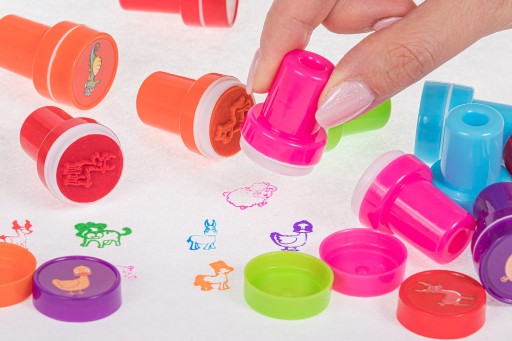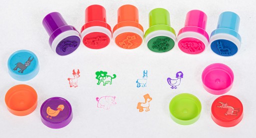 Марки заповнені кольоровими чорнилами. Він укладений у колір чорнила, щоб було легше оцінити, який саме це штамп. Крім того, штемпели мають візерунки тварин.