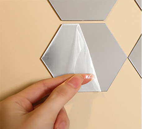 Зі зворотного боку кожен елемент має самоклеючу поверхню, а дзеркальна сторона захищена захисною плівкою.