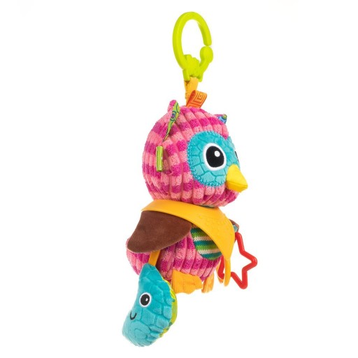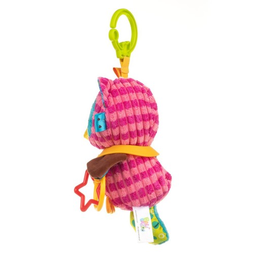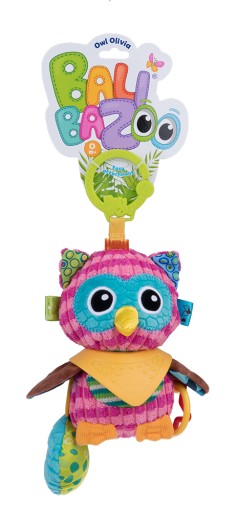 Окрім цього, Олівію супроводжують м’який прорізувач для зубів, різнокольоровий м’яч і квадрат, звісно, кольорів, що збігаються з її рожевим пір’ям.