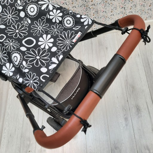 Кріплення на резинці (натягується на капюшон коляски) і шнурках з регульованими стопорами.