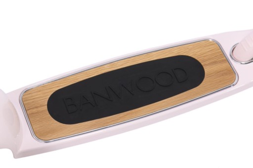 Широка та зручна дубова дека з чорною гумовою ручкою, гумовими ручками керма, алюмінієвим дном із логотипом Banwood, плетеним кошиком