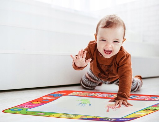 - КОЛЬОРОВЕ, НЕСКІНЧЕННЕ РОЗВАГАÂ â чарівні ручки можна наповнювати водою багато разів; після висихання килимок знову придатний для гри; яскраві кольори привертають увагу дитини та спонукають до повторної гри; килимок має ретельно оброблені краї та цікаві принти; дозволяє створювати малюнки в 4 відтінках: зелений, червоний, оранжевий і синій.