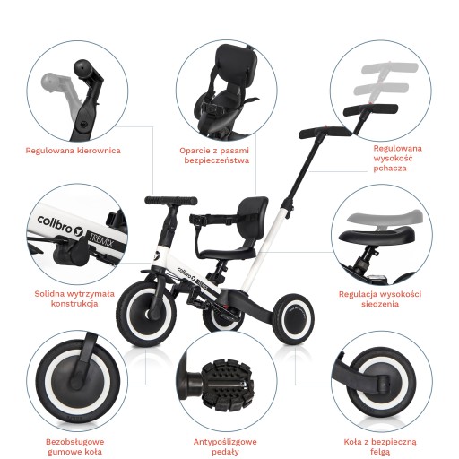 Colibro Tremix UP- це надзвичайно функціональний автомобіль, який буде використовуватися з року в рікти ростеш разом з нашою дитиною, динамічно змінюючи свої функції та зовнішній вигляд, щоб адаптуватися до віку та рівня навичок їжака!