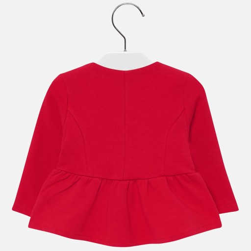 куртка з довгим рукавом для дівчинки. Круглий виріз. Застібка на кнопки. Теплий, щільний трикотаж, розроблений спеціально для захисту від холоду. Декоративна імітація кишень спереду. Прикраси: аплікація бантик, декоративні рюші.