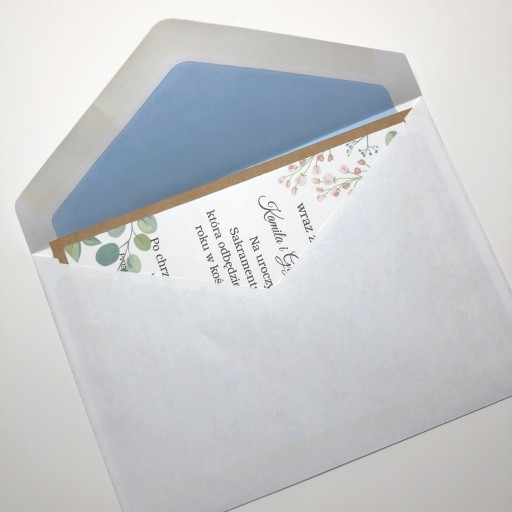 Запрошення виконано на білому папері та наклеєно на ЕКО папір коричневого кольору.