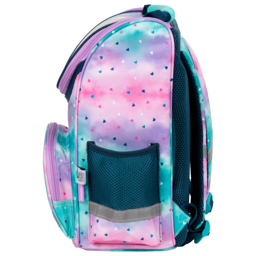 - Кришка шкільного ранця закривається на двосторонню блискавку з гумовими затягувачами у формі серця