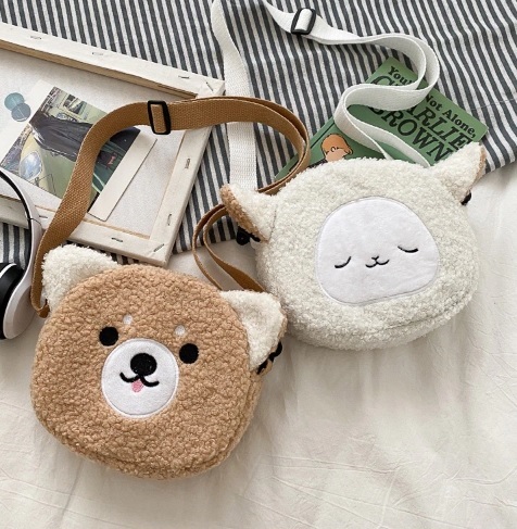 СУМКА ГАМАНЕЦЬ НА РЕМЕНІ, ПЛЮШ, КОРИЧНЕВИЙ МІ
