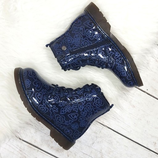 Черевики для дівчинки на блискавці з м'якого синтетичного матеріалу. Шнурки дозволяють точно регулювати ширину взуття. Культова гумова підошва. Легке утеплення.