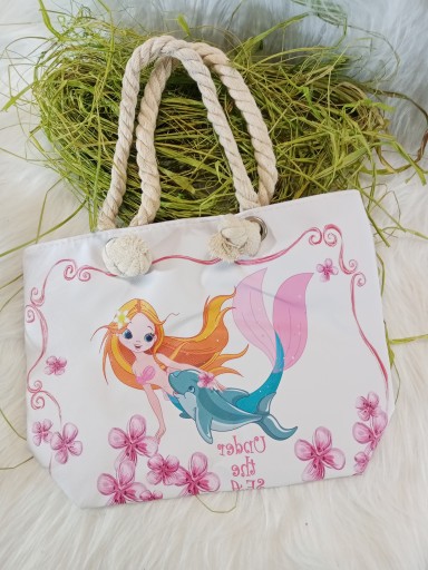 - Сумочка з тканинного матеріалу, прикрашена візерунками та русалками спереду.