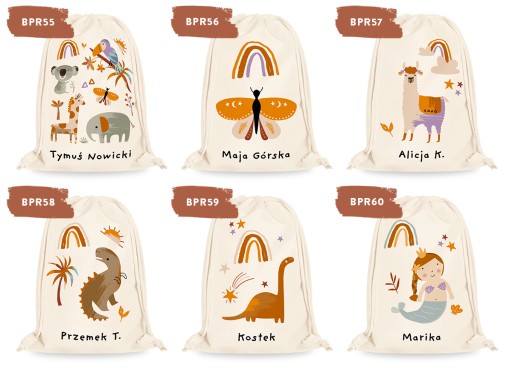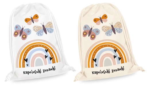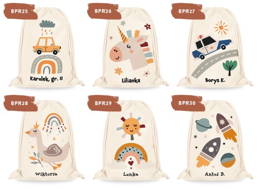 Іменна сумка з красивою, модною, барвистою графікою — ідеальне рішення для зберігання тапочок і дитячого одягу в яслах, дитячих садках чи школах.