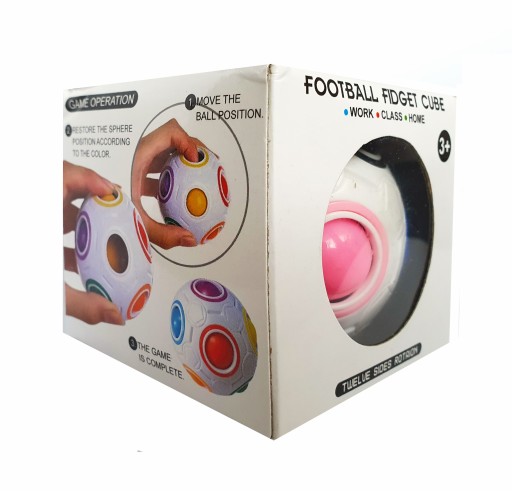 Виріб призначений для дітей +3 і для дорослих. М'яч дуже сильно стимулює м'язи руки, тому що при розташуванні кольорів наші пальці інтенсивно працюють. Він ідеально підходить для зняття стресу або розваги під час роздумів.