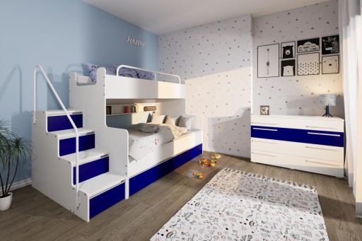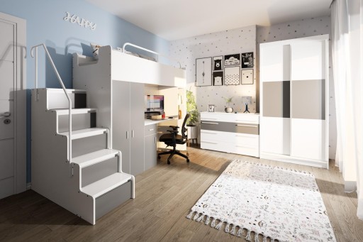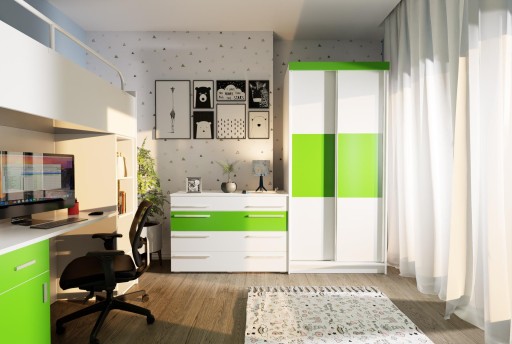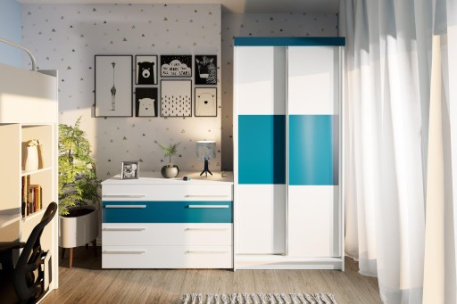 Комоди в нашій пропозиції доступні в різних кольорах, починаючи від білого до темних і строкатих кольорів. Завдяки доступним кольорам ви можете підібрати комод до решти меблів у нашій пропозиції. Ви можете поставити комод поруч із двоярусними ліжками Magnum, Kiki та Miki. Ми гарантуємо, що кольори меблів будуть ідеально поєднуватися один з одним.