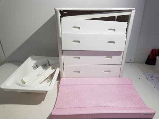 - Ванна + пеленальний столик + комод: 4 ящики та аксесуари, які містять трохи місця для зберігання