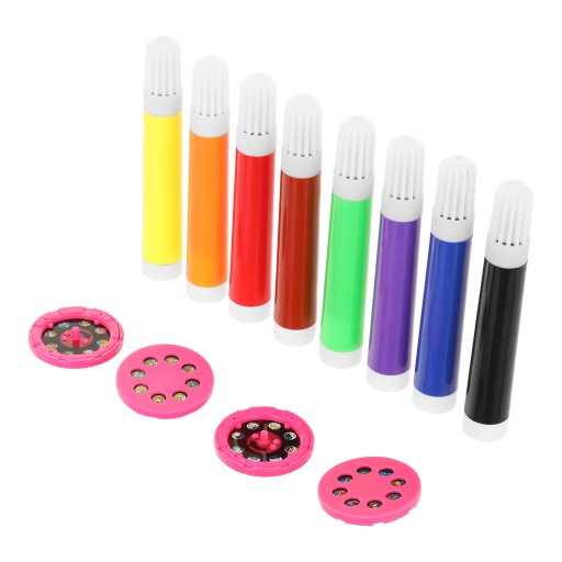 Аж до8 маркерів різних кольорів,завдяки якому дитина зможе створити барвистий, веселий малюнок.Вони легко змиваються з шкіри.Вам не потрібно хвилюватися, що пляма на дитячій руці потребує хорошого відтирання.